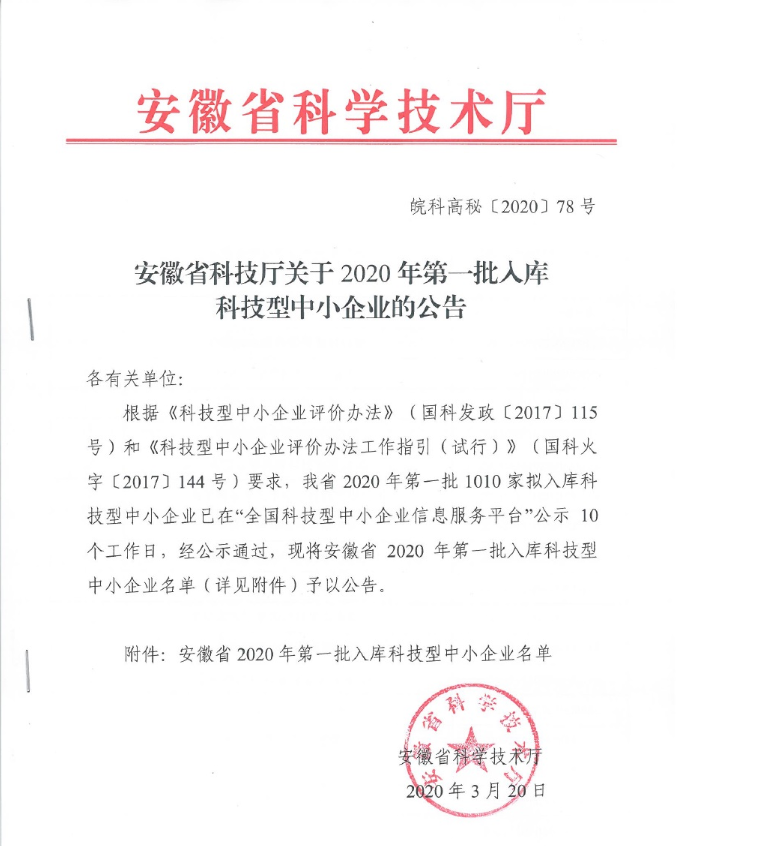 日前,從安徽省科學技術(shù)廳傳來喜訊,合肥原位科技有限公司被認定為2020年“國家科技型中小企業(yè)”,這是公司在堅持科技創(chuàng)新發(fā)展道路上取得的一項喜人成果,為2019年度的科技創(chuàng)新工作畫上了圓滿的句號。