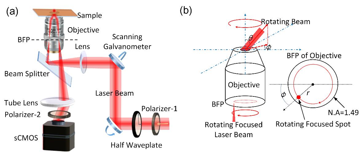 針對上述不足,中國科學(xué)技術(shù)大學(xué)光學(xué)與光學(xué)工程系微納光學(xué)與技術(shù)課題組副教授張斗國、教授王沛,與浙江大學(xué)教授劉旭、匡翠方,中國科學(xué)院合肥物質(zhì)科學(xué)研究院安徽光學(xué)精密機械研究所研究員劉建國、桂華僑,中國科大高分子科學(xué)與工程系教授鄒綱,美國馬里蘭大學(xué)醫(yī)學(xué)院教授J.R. Lakowicz等合作,提出并實現(xiàn)了一種基于旋轉(zhuǎn)照明的表面波光學(xué)顯微成像新技術(shù),提高了無標(biāo)記成像的分辨率,拓展了表面波光學(xué)顯微鏡的應(yīng)用范疇,相關(guān)研究成果以Label-free surface-sensitive photonic microscopy with high spatial resolution using azimuthal rotation illumination 為題,發(fā)表在國際期刊《科學(xué)進(jìn)展》(Science Advances)上。