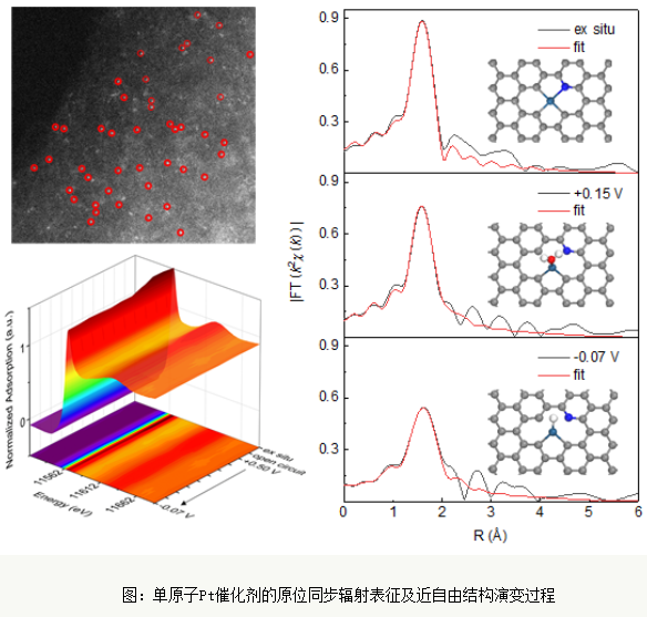在能源催化領域中,精確探測催化劑在服役狀態(tài)下原子尺度結構的動態(tài)變化過程對于催化劑的理性設計具有重要意義。近幾十年,科學家對納米尺度材料的深入理解和可控構筑極大地促進了催化科學的基礎和應用研究的發(fā)展。其中,單原子催化劑由于其高的原子利用效率、優(yōu)異的反應活性和選擇性,成為了近年來能源催化領域的明星材料。單原子催化劑的活性和選擇性高度取決于其金屬原子的局域原子和電子結構,及其與載體間的相互作用。然而,單原子催化劑在實際反應狀態(tài)下,受到溫度、電場、光照等外界環(huán)境激發(fā),會發(fā)生結構演變的響應,因此,原位實時在線表征這種特殊的結構響應行為對于理解單原子催化的本質并發(fā)現(xiàn)新的催化現(xiàn)象具有重要的啟發(fā)意義。同步輻射X射線吸收譜是描繪催化中心局域空間和電子結構最強有力的工具之一,能在實際催化環(huán)境中實現(xiàn)固、液、氣態(tài)樣品的原位探測。因此,高亮度和高靈敏的先進同步輻射光源為研究這一亟待突破的問題提供了契機。