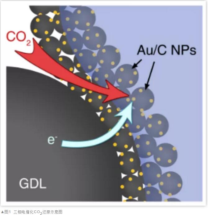 基于氣體擴(kuò)散電極的三相電催化CO2還原體系,能夠大幅促進(jìn)CO2分子與催化劑的接觸,從而在理論上具有更高的催化反應(yīng)速率。本文將Au/C納米顆粒負(fù)載到由碳纖維構(gòu)成的氣體擴(kuò)散層(GDL)表面,構(gòu)筑了一種典型的三相電催化反應(yīng)體系。