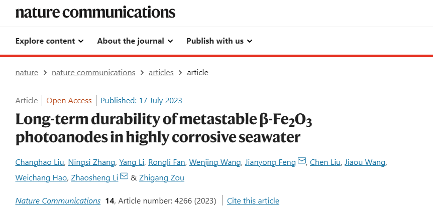 近日,南京大學(xué)現(xiàn)代工學(xué)院李朝升、鄒志剛團(tuán)隊(duì)探索了光電化學(xué)分解海水過(guò)程中OH?和Cl?等離子參與β-Fe2O3表面重構(gòu)的過(guò)程,并且利用晶格中的Sn增強(qiáng)金屬-氧相互作用的原理,抑制了過(guò)度的表面重構(gòu),在模擬海水電解液中穩(wěn)定工作3000小時(shí),獲得了目前報(bào)道的穩(wěn)定性最好的海水分解光陽(yáng)極材料。相關(guān)的工作以“Long-term durability of metastable β-Fe2O3 photoanodes in highly corrosive seawater”為題發(fā)表在Nature Communications上。