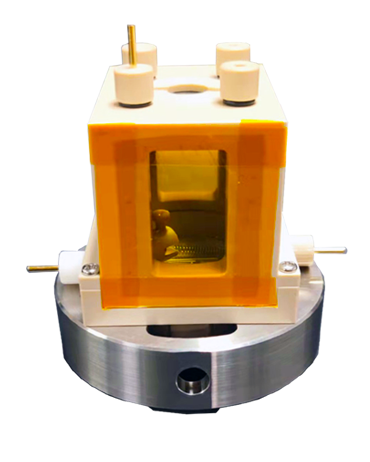 反應(yīng)池應(yīng)用于光電催化反應(yīng)的原位XRD表征,池體頂部開有石英光窗,池體左右側(cè)開有聚酰亞胺窗口,配有參比電極、對電極及工作電極,可以在不同波長光照,不同電學(xué)條件下實(shí)現(xiàn)原位XRD測試,得到材料的結(jié)構(gòu)變化;反應(yīng)池可以實(shí)現(xiàn)反應(yīng)池內(nèi)溶液中通氣操作,產(chǎn)品可選配溫控系統(tǒng)精確控制反應(yīng)池測試溫度。
